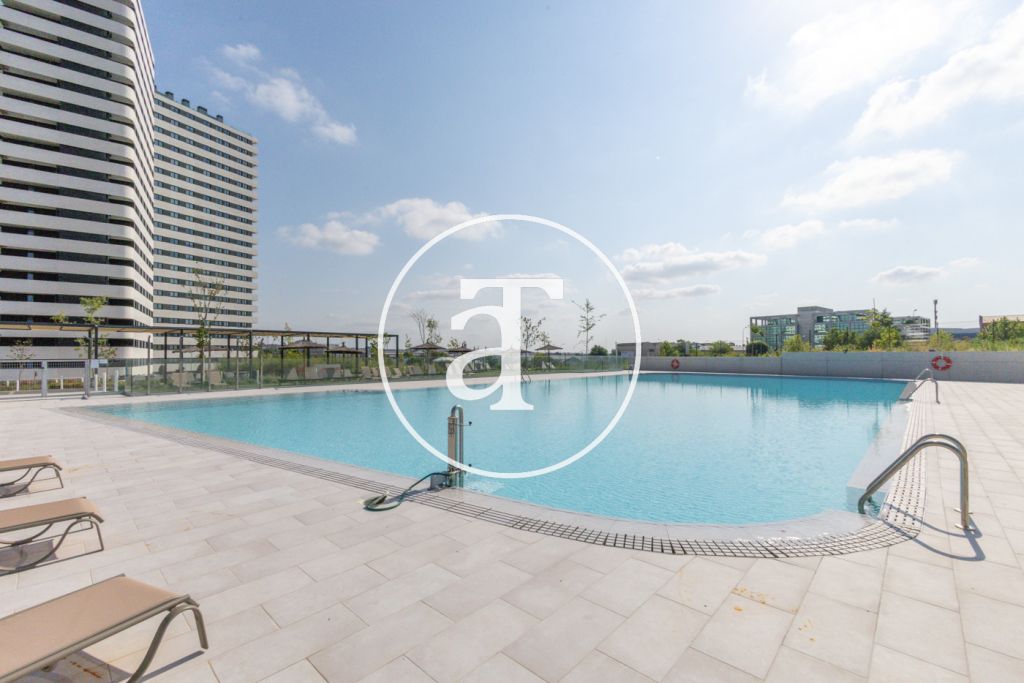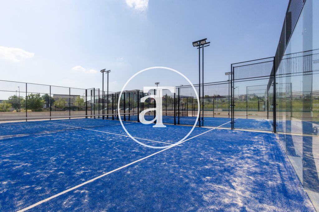 El edificio dispone de zonas de coworking tanto interiores como exteriores, lavandería, maquinas de vending, servicio de alquiler de equipamiento y parking. También incluye amplias zonas de bienestar y deporte, como pista de pádel, pista polideportiva, gimnasio interior y exterior, piscina y solárium. Para socializar y disfrutar del tiempo libre, el complejo cuenta con terrazas, sala de juegos y extensas zonas verdes.