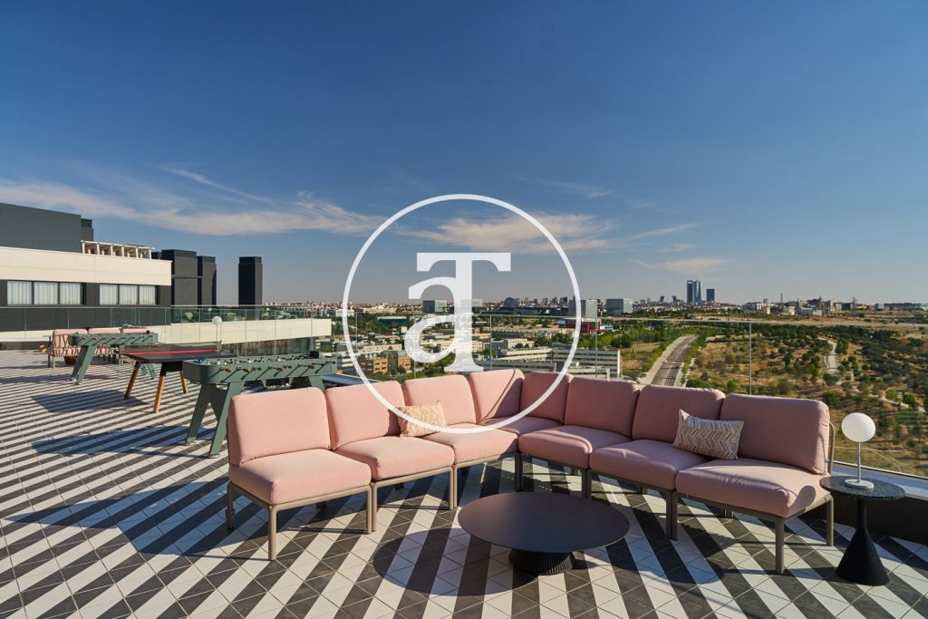 Flex Living de alojamiento temporal (estancias máximas de 12 meses)**Consultar tarifas de precios y condiciones especiales, en función de la duración del contrato* Consultar disponibilidad * * Fotos orientativas, puede no coincidir con la planta ofrecida. *Fianza de 1000 € Consumos incluidos - Sin honorarios de agencia**Tipo de alquiler regido por condición de “Aparthotel”Este Flex Living en Alcobendas ofrece un estudio independiente con cama doble, baño privado y cocina equipada, pensado para quienes desean privacidad sin renunciar a la experiencia de comunidad. Se encuentra dentro de un complejo residencial de concepto compartido, diseñado para adaptarse a distintas necesidades y estilos de vida, con múltiples servicios e instalaciones comunes.El edificio dispone de zonas de coworking tanto interiores como exteriores, lavandería, maquinas de vending, servicio de alquiler de equipamiento y parking. También incluye amplias zonas de bienestar y deporte, como pista de pádel, pista polideportiva, gimnasio interior y exterior, piscina y solárium. Para socializar y disfrutar del tiempo libre, el complejo cuenta con terrazas, sala de juegos y extensas zonas verdes.En la estancia están incluidos todos los suministros, limpieza periódica, wifi de alta velocidad, máquinas de vending, recepción y seguridad 24 horas, además de servicio de paquetería (no incluye menaje). El Flex Living es pet-friendly, por lo que también se permite la estancia con mascotas.En cuanto a la ubicación, se encuentra a 9 minutos a pie de la estación de metro La Granja, lo que garantiza una excelente conexión con el centro de Madrid. Muy cerca se ubican espacios de interés como el Parque de Andalucía y el Parque de la Comunidad de Madrid, ideales para pasear o hacer deporte al aire libre. A pocos minutos en coche está el centro comercial Diversia, con restaurantes, supermercados, cines y tiendas de todo tipo. También destaca la cercanía al Hospital Universitario Infanta Sofía, al campus de la Universidad Europea de Madrid en Alcobendas, a escuelas de negocios como ESIC Business & Marketing School o IE Business School, y a la Universidad Autónoma de Madrid (UAM), lo que convierte este alojamiento en un lugar estratégico para estudiantes de máster, doctorado o programas de intercambio, así como para profesionales desplazados temporalmente.
