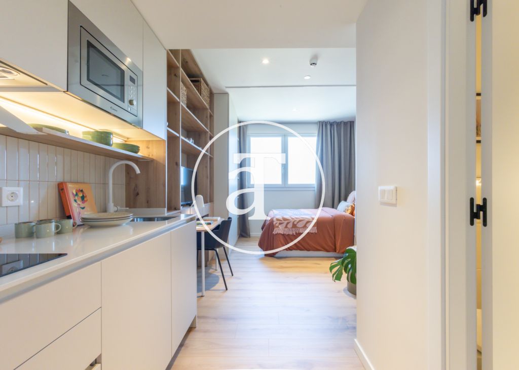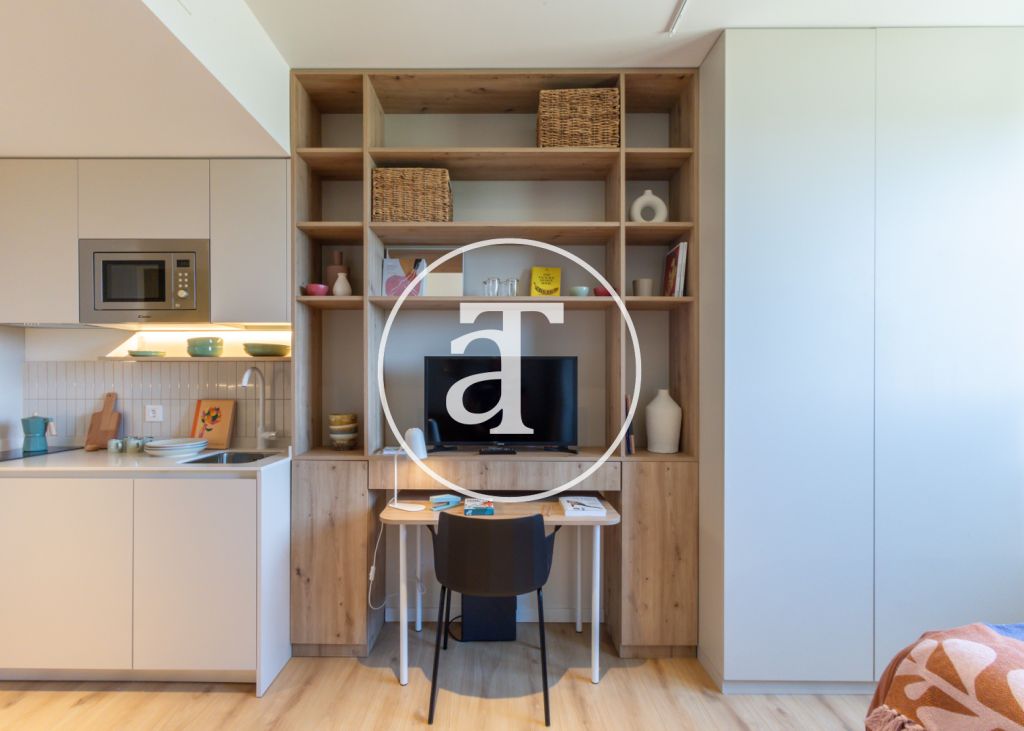 Este Flex Living en Alcobendas ofrece un estudio independiente con cama doble, baño privado y cocina equipada, pensado para quienes desean privacidad sin renunciar a la experiencia de comunidad. Se encuentra dentro de un complejo residencial de concepto compartido, diseñado para adaptarse a distintas necesidades y estilos de vida, con múltiples servicios e instalaciones comunes.