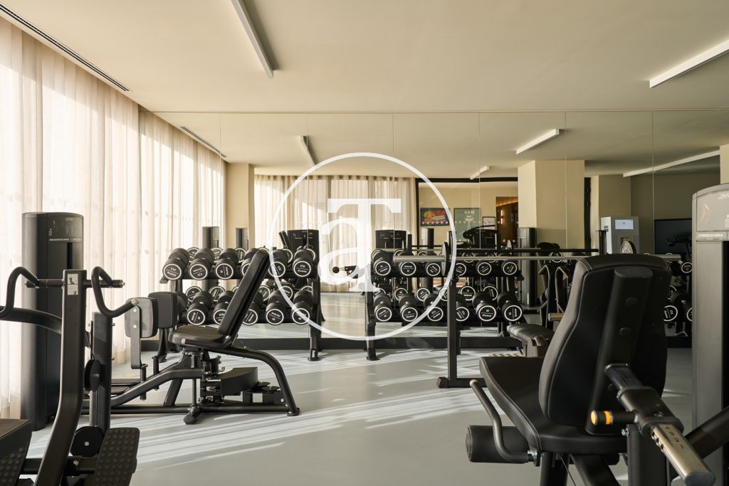 El edificio dispone de zonas de coworking tanto interiores como exteriores, lavandería, maquinas de vending, servicio de alquiler de equipamiento y parking. También incluye amplias zonas de bienestar y deporte, como pista de pádel, pista polideportiva, gimnasio interior y exterior, piscina y solárium. Para socializar y disfrutar del tiempo libre, el complejo cuenta con terrazas, sala de juegos y extensas zonas verdes.