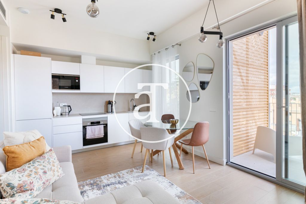 Appartement en location temporaire avec 2 chambres, terrasse, parking et piscine à Ciudad Lineal