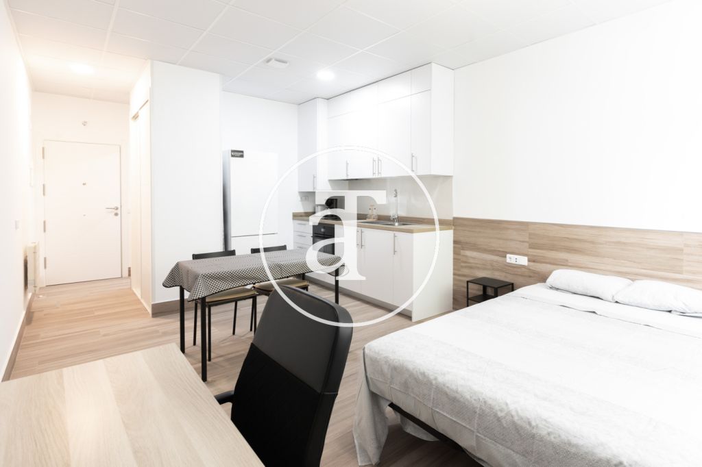 Appartement en location temporaire (de 32 jours à 11 mois)Ce studio à Latina se distingue par son ambiance chaleureuse et pratique, idéale pour les séjours temporaires à Madrid.La pièce principale combine une chambre, une salle à manger et une cuisine dans un seul espace ouvert, baigné de lumière naturelle, créant un environnement agréable. La cuisine intégrée est équipée des appareils électroménagers essentiels et dispose d'une table à manger pour deux personnes. L'espace nuit dispose d'un lit double, d'une table et d'une chaise, parfaits pour télétravailler ou étudier confortablement, ainsi que d'une armoire double offrant la capacité de rangement nécessaire. La salle de bain complète est équipée d'une douche.Quant à son emplacement, ce studio se trouve à seulement 3 minutes à pied de la station de métro Casa de Campo (lignes 5 et L10), assurant un accès rapide au centre de Madrid, aux universités, aux bureaux et aux hôpitaux.Les environs immédiats sont entourés d'espaces verts, avec un accès direct au parc Casa de Campo, idéal pour les promenades, les sports de plein air ou les moments de détente. Le zoo-aquarium de Madrid et divers espaces de loisirs sont également à quelques minutes. Grâce à son excellente connexion et à son atmosphère calme, cet appartement est une option très intéressante pour ceux qui souhaitent séjourner un mois en ville pour leurs études, leur travail ou leurs loisirs.