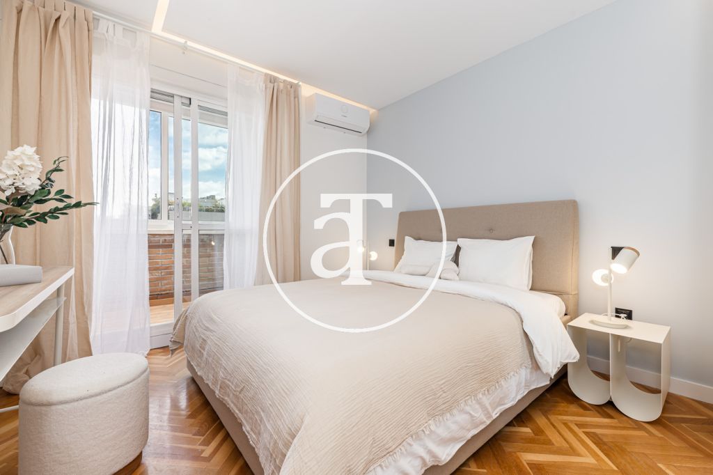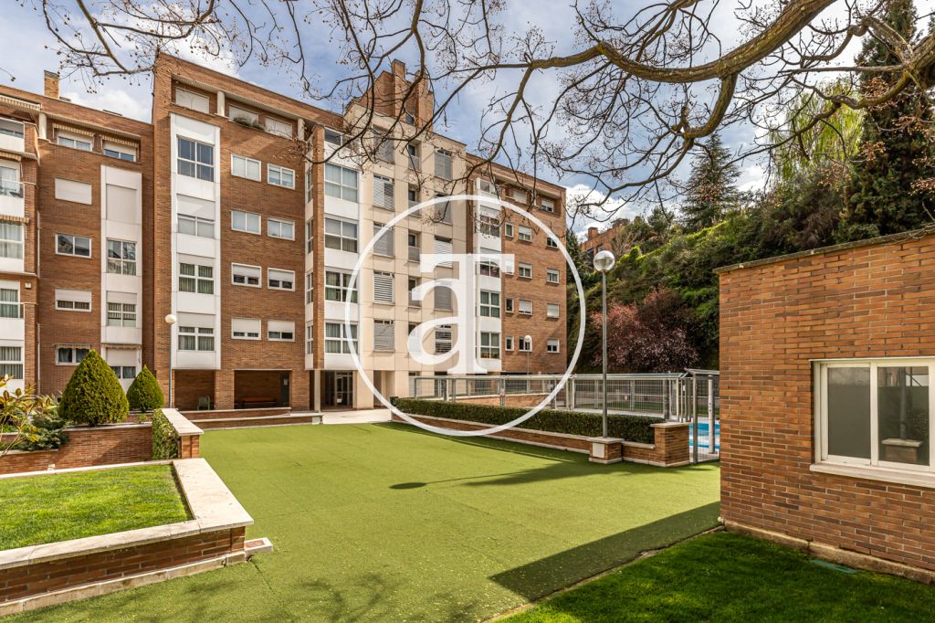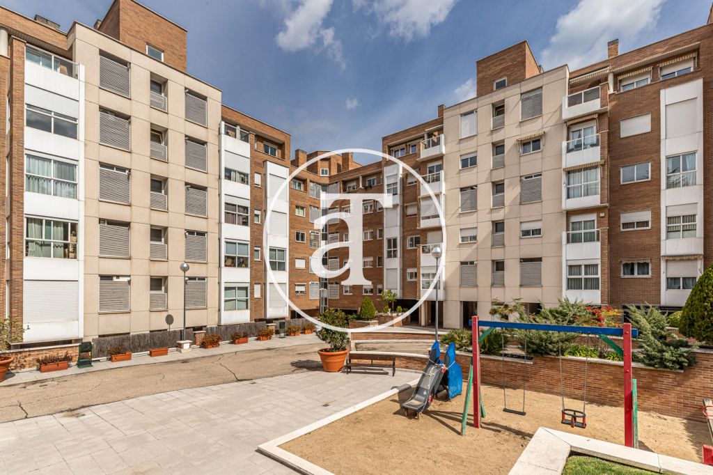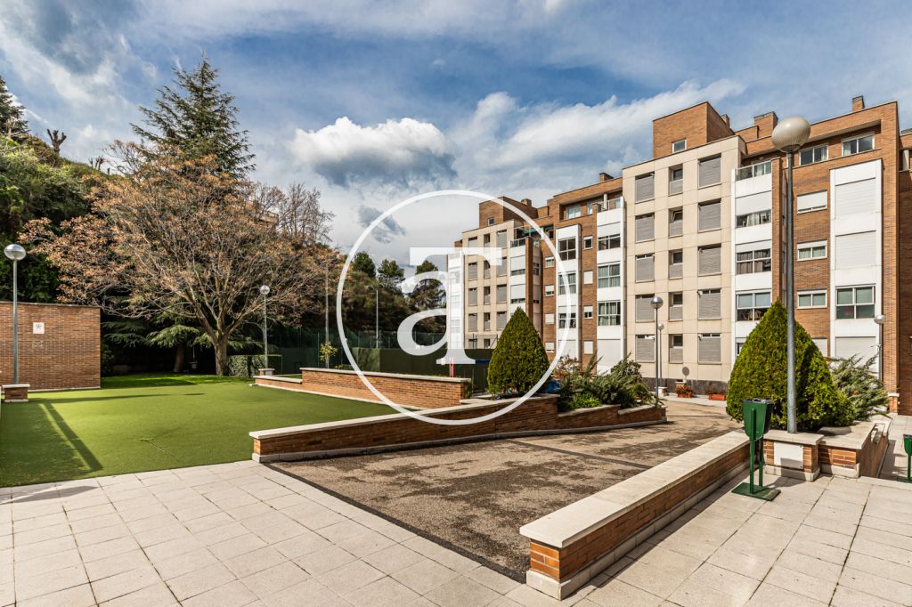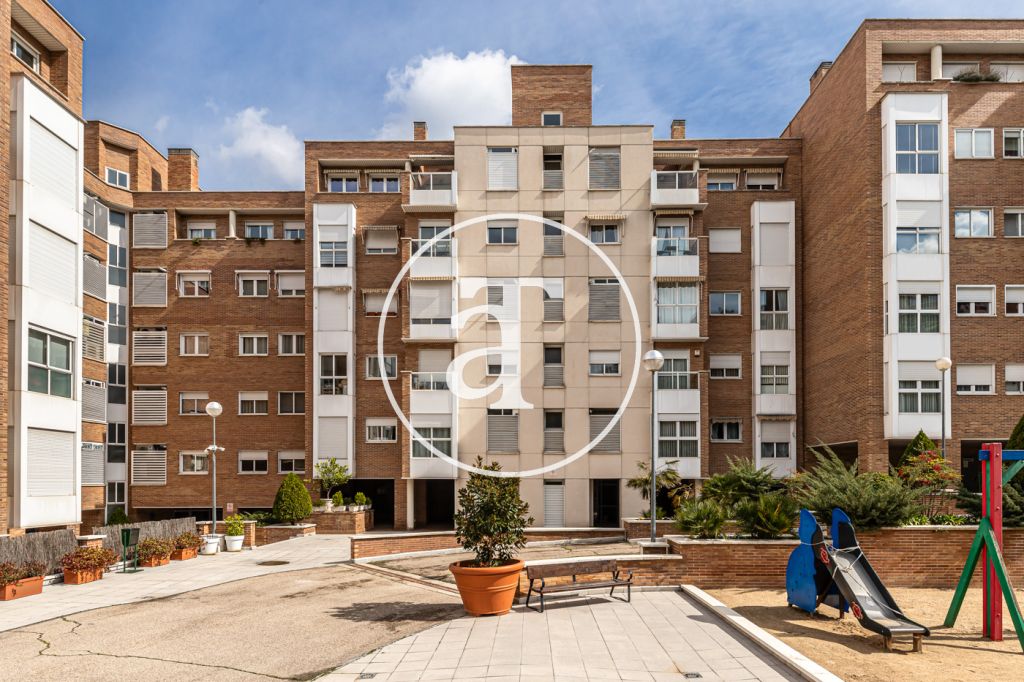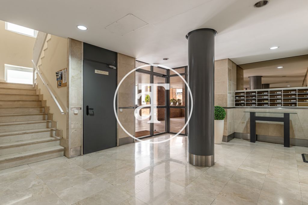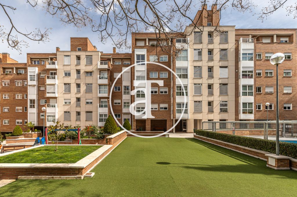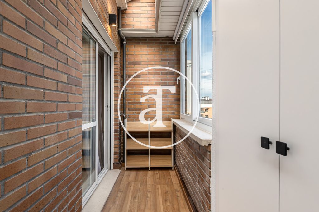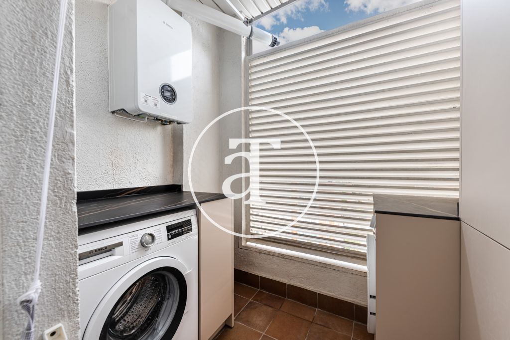 Duplex à louer temporairement à Aravaca, comprenant 2 chambres, un balcon, 2 salles de bains, des toilettes et un parking.