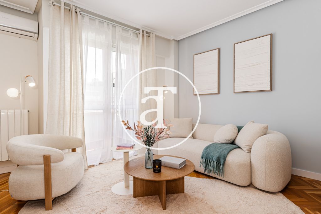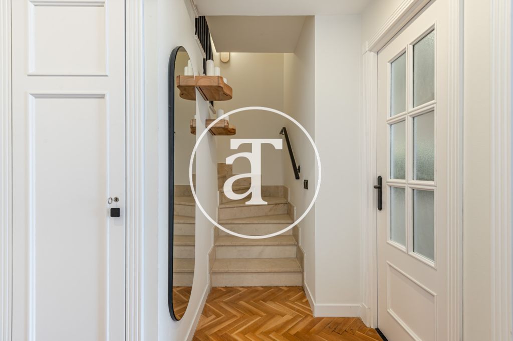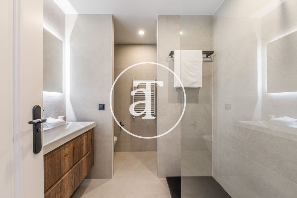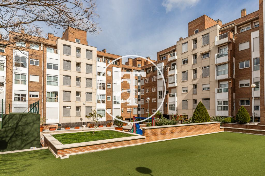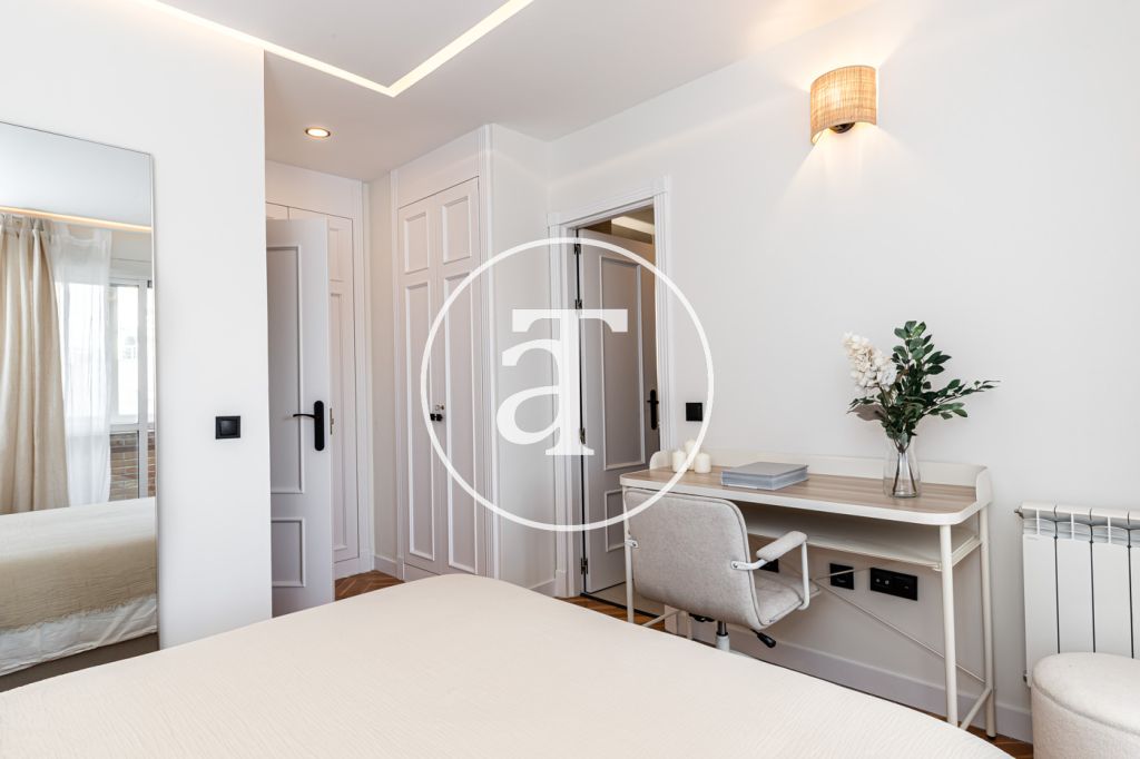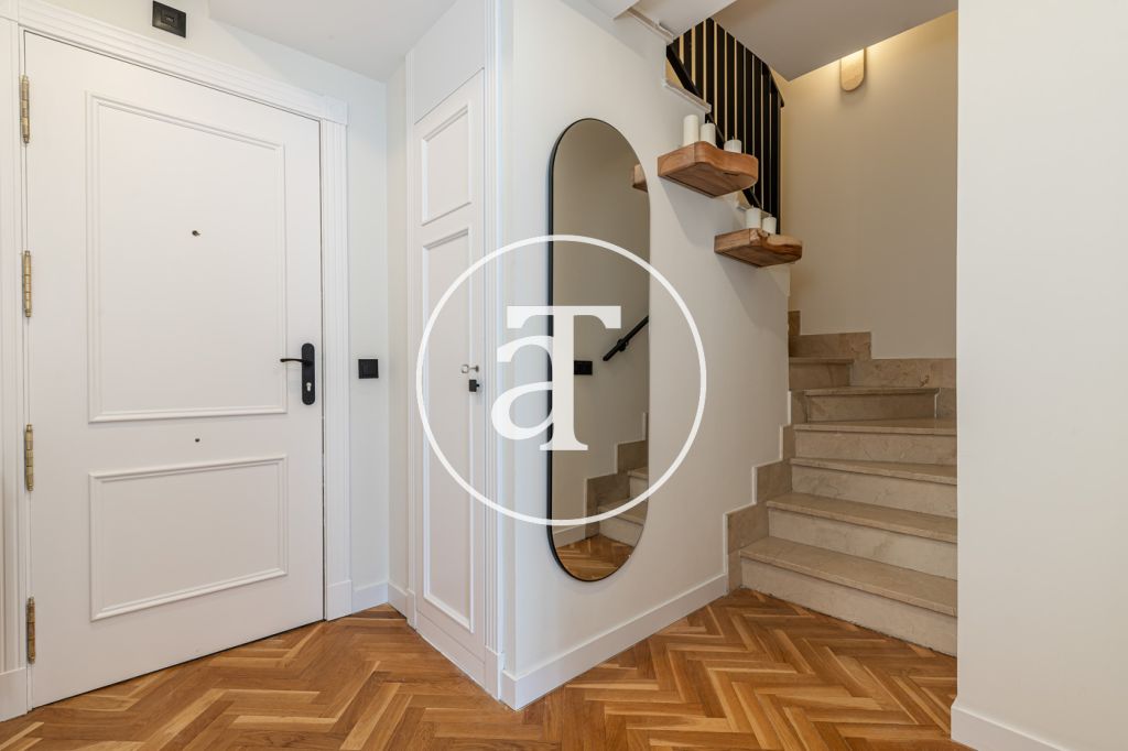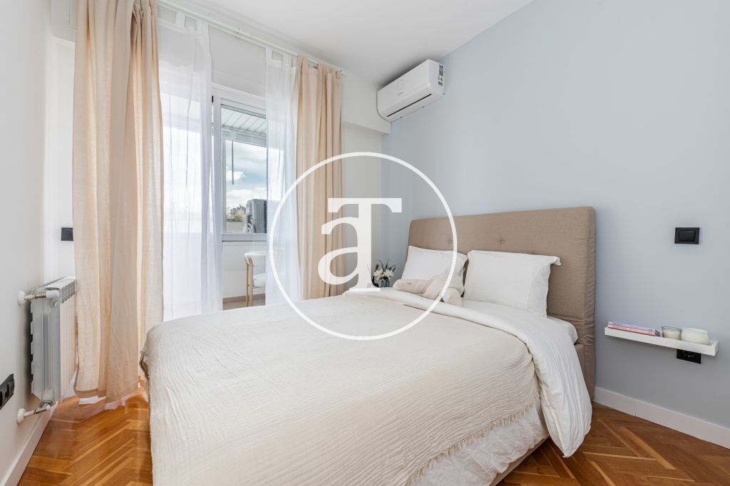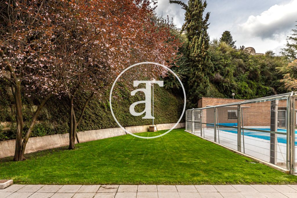 Duplex à louer temporairement à Aravaca, comprenant 2 chambres, un balcon, 2 salles de bains, des toilettes et un parking.