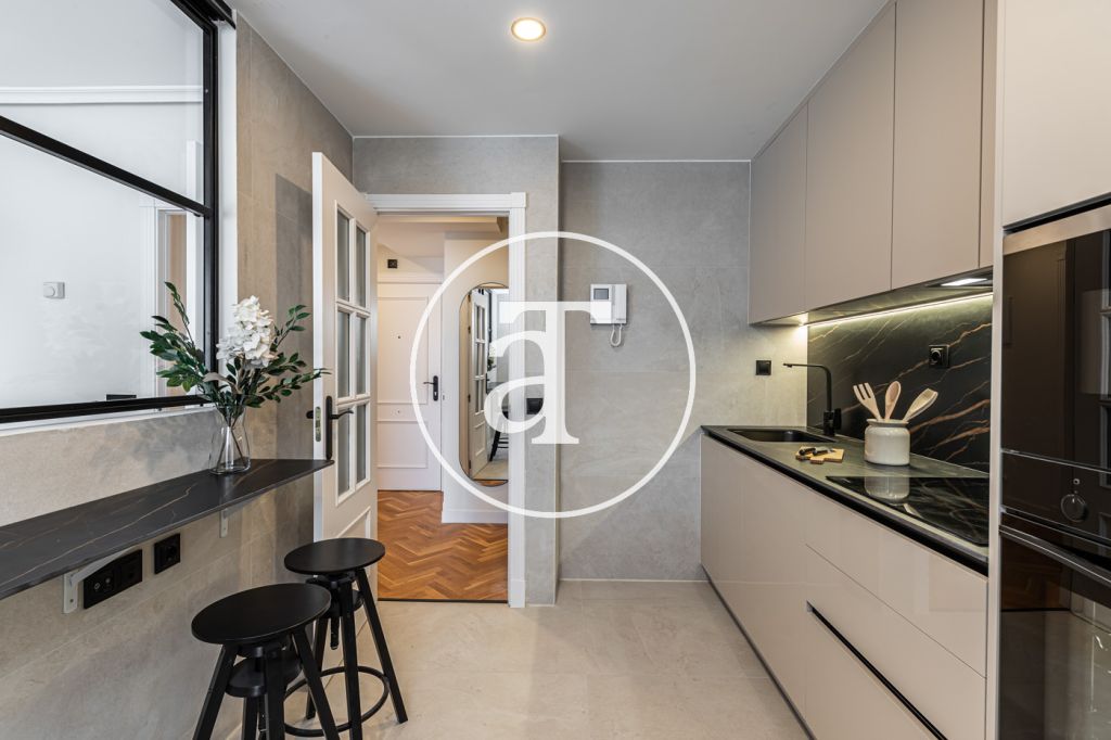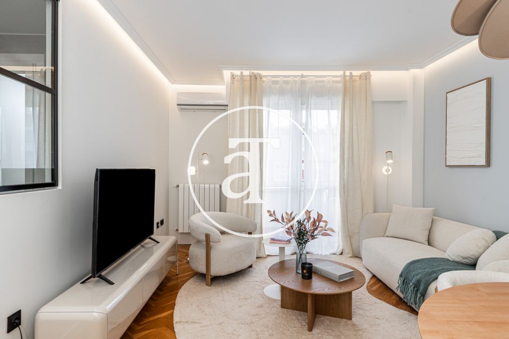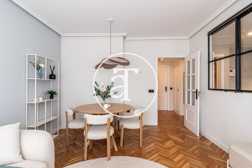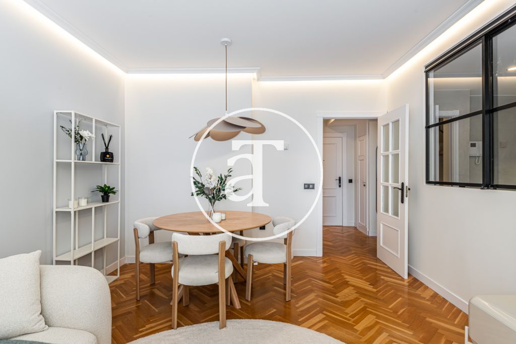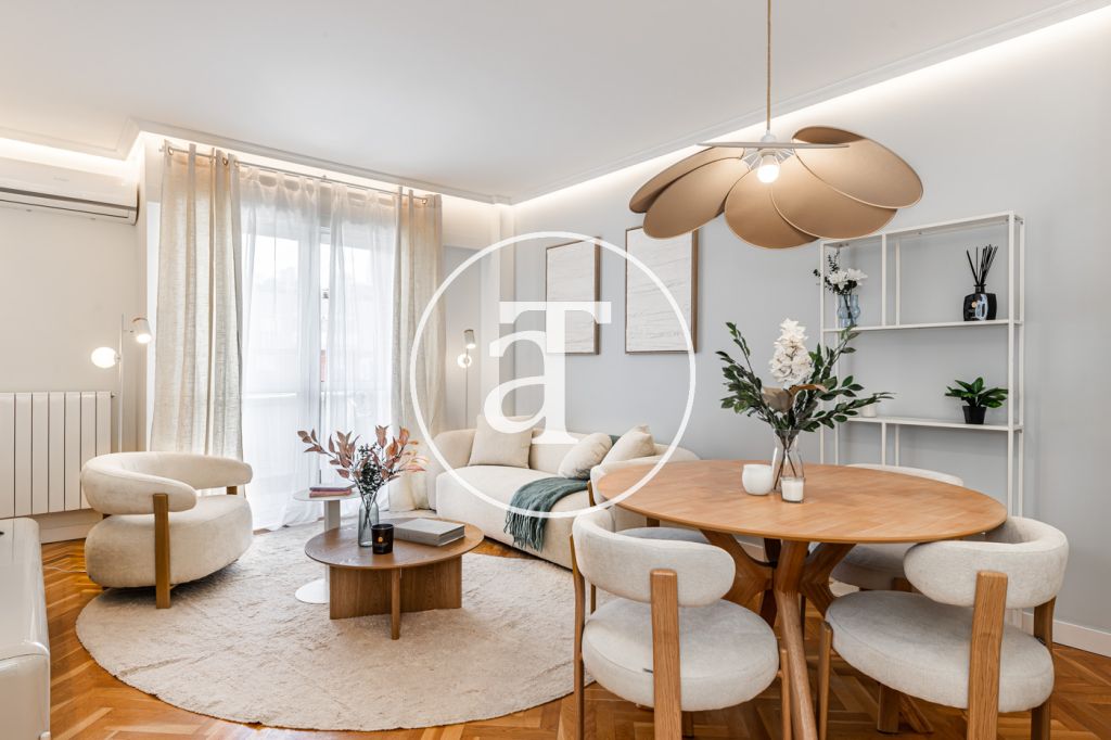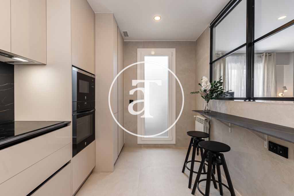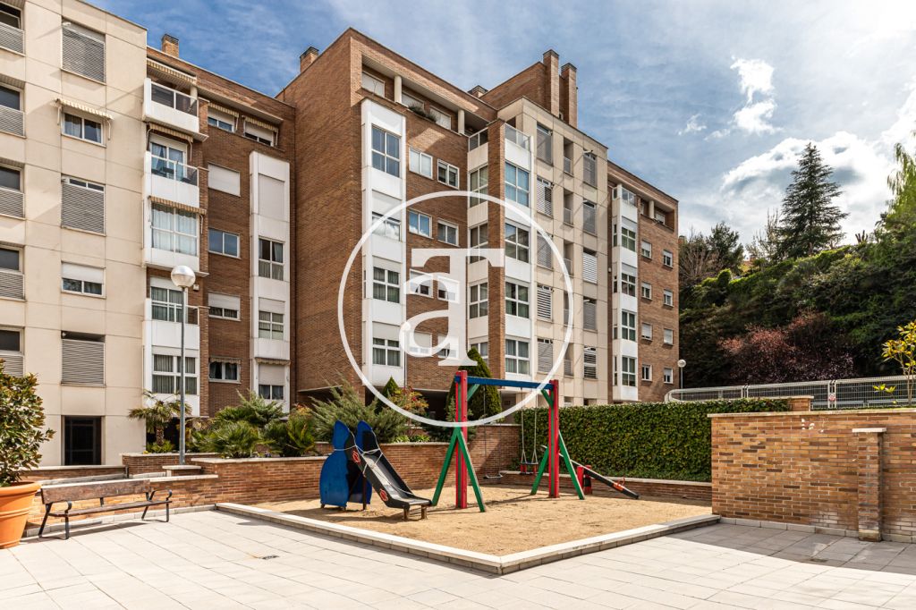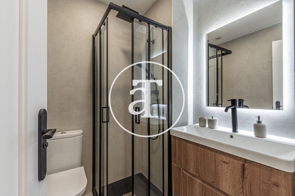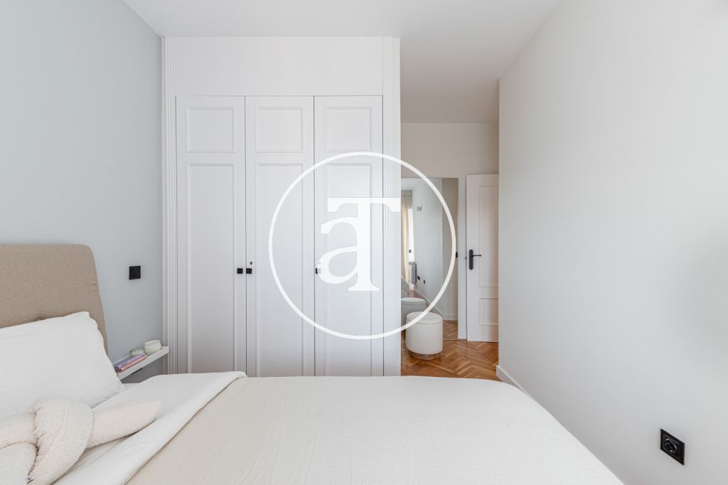 Duplex à louer temporairement à Aravaca, comprenant 2 chambres, un balcon, 2 salles de bains, des toilettes et un parking.
