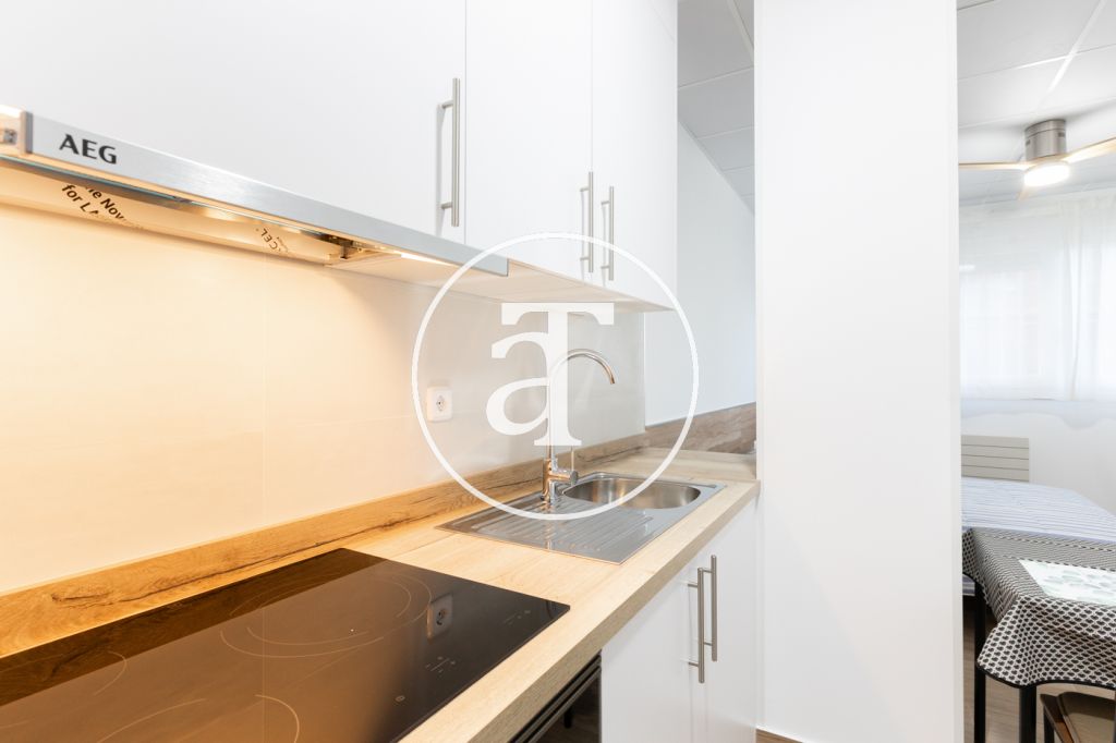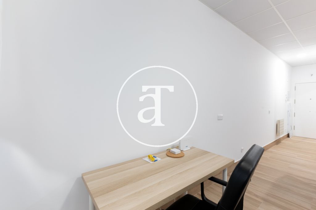 Apartamento de alquiler temporal (de 32 días a 11 meses)Este piso tipo estudio en Latina ofrece un espacio amplio, luminoso y funcional, ideal para quienes buscan una estancia temporal en MadridEl espacio principal integra dormitorio, comedor y cocina en una misma estancia, aprovechando al máximo la amplitud y la luz natural que entra a través de sus grandes ventanas. La cocina está equipada con los electrodomésticos necesarios para el día a día y cuenta con una mesa de comedor para dos personas. La zona de descanso dispone de cama doble, además de un área de trabajo con mesa y silla, pensada para estudiar o teletrabajar con comodidad. El estudio incluye armarios de almacenamiento y un baño moderno con plato de ducha.La ubicación es uno de sus puntos fuertes: a tan solo 3 minutos caminando se encuentra la estación de metro Casa de Campo (L5 y L10), que conecta de forma directa con el centro de Madrid, universidades, áreas de oficinas y otros puntos estratégicos de la ciudad.El entorno está rodeado de zonas verdes, con acceso inmediato al Parque Casa de Campo, uno de los pulmones naturales de Madrid, perfecto para pasear o hacer deporte al aire libre. Muy cerca también se encuentra el Zoo Aquarium de Madrid y diversas instalaciones recreativas. Gracias a estas conexiones, este piso es una excelente opción para quienes se trasladan temporalmente a Madrid ya sea por motivos profesionales, estudios de posgrado entre otros.