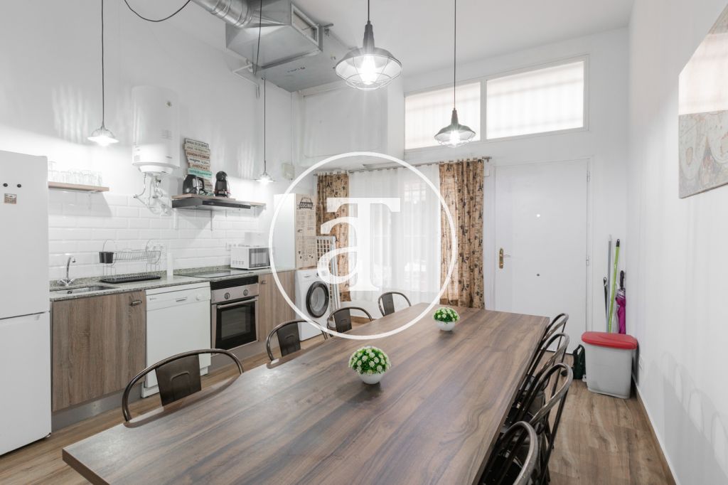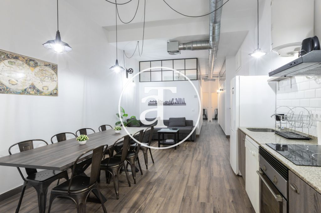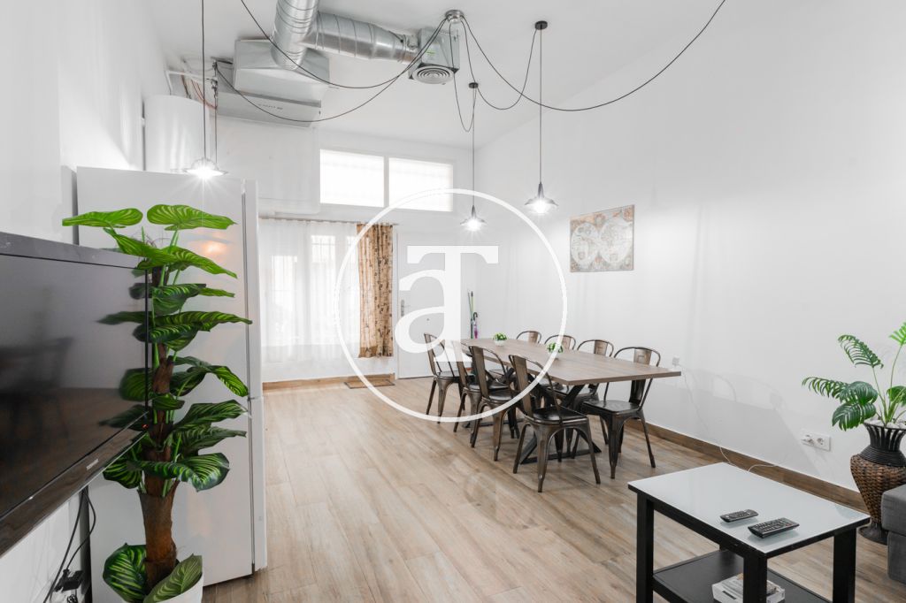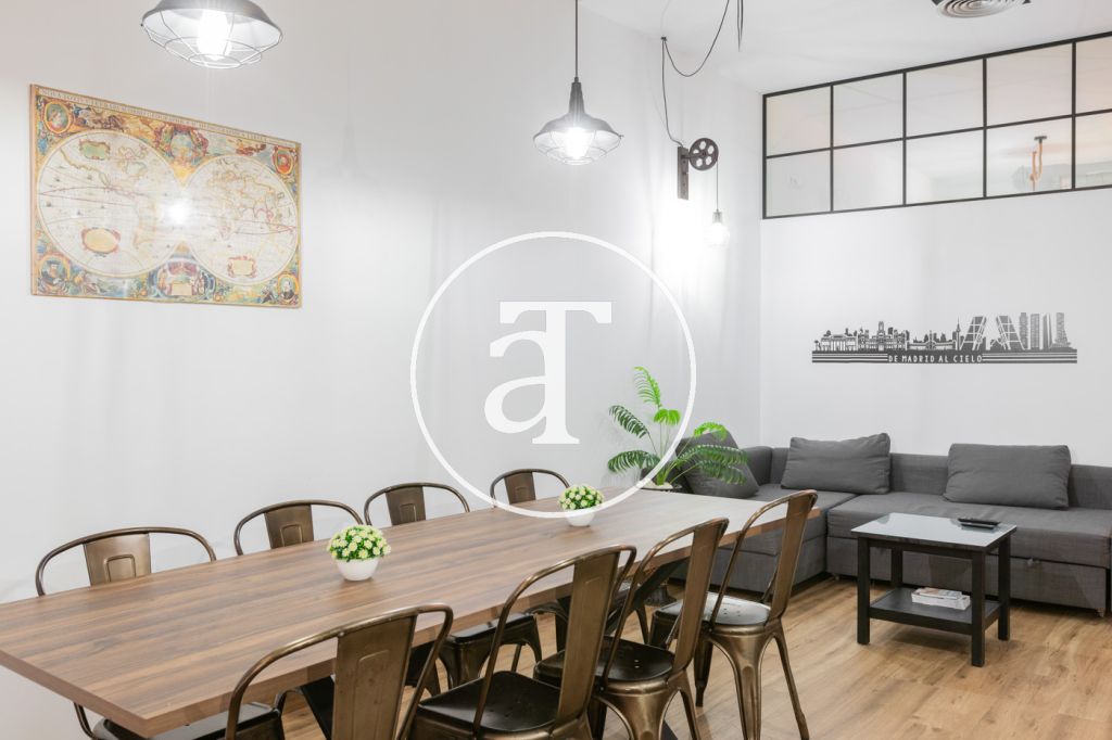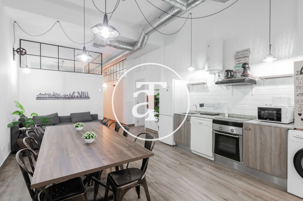 Este piso de alquiler temporal, ubicado en un bajo en la zona de Moncloa, combina amplitud, comodidad y estilo industrial, ideal para grupos o estudiantes que buscan un espacio práctico con excelente conexión al resto de la ciudad.